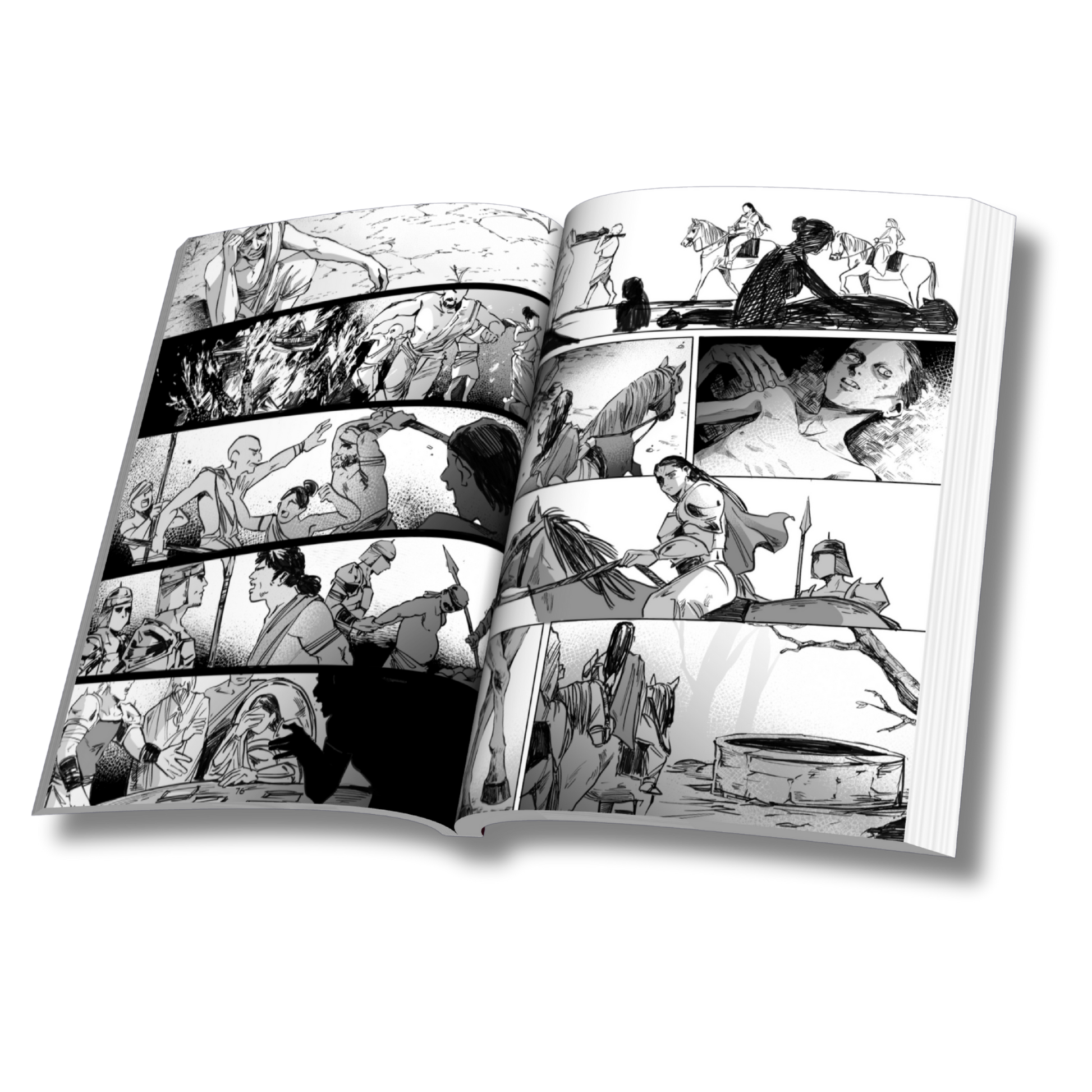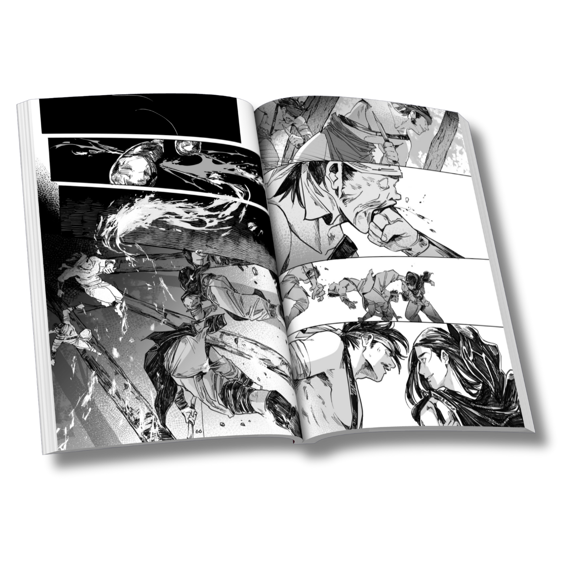 - Dynamic action sequences brought to life with cinematic panel work, from tense ambushes to blazing forest battles.